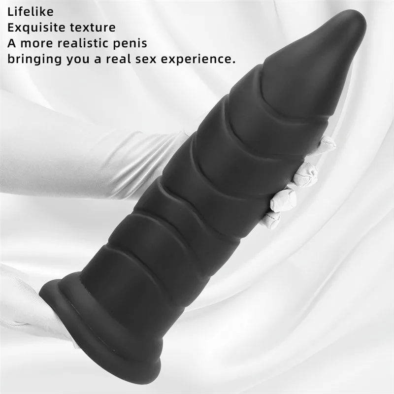 14 Inch Huge Black Tapered Anal Dildo Liquid Silicone Butt Plug