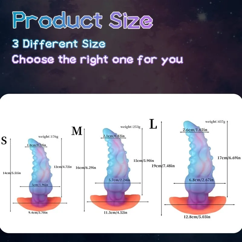 5.5/6/7.5 Inch Luminous Octopus Tentacle Anal Dildo Plug Toy
