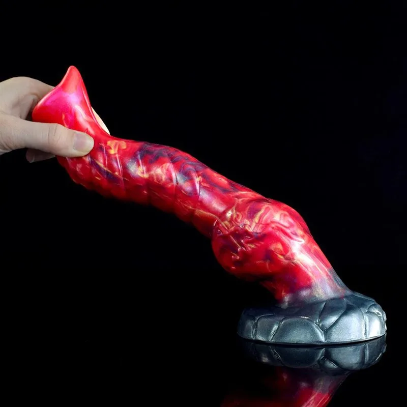 9 IN Ribbed Canine Wolf Dog Dildo Silicone Knotted Sex Toy